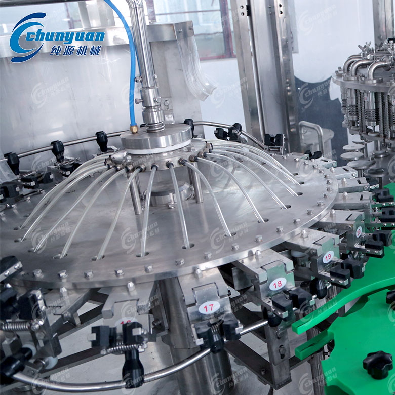 配合后道倒瓶裝置(使瓶蓋內(nèi)壁受熱殺菌)和冷卻隧道,實現(xiàn)無菌灌裝效果。